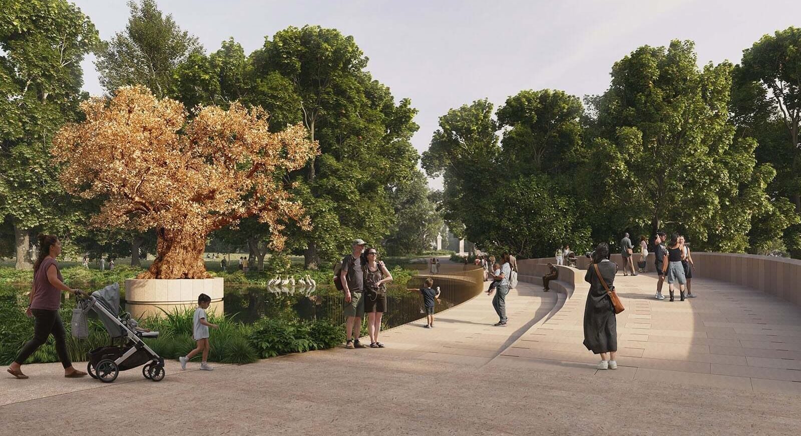 Ústredným motívom návrhu od štúdia Tom Stuart-Smith je odliatok duba z Windsorského parku, ktorý by mal byť umiestnený na podstavci v jazere. Priestor je prepojený zakriveným mostom z kameňa, ktorý zároveň slúži ako miesto na prechod i stretávanie sa.