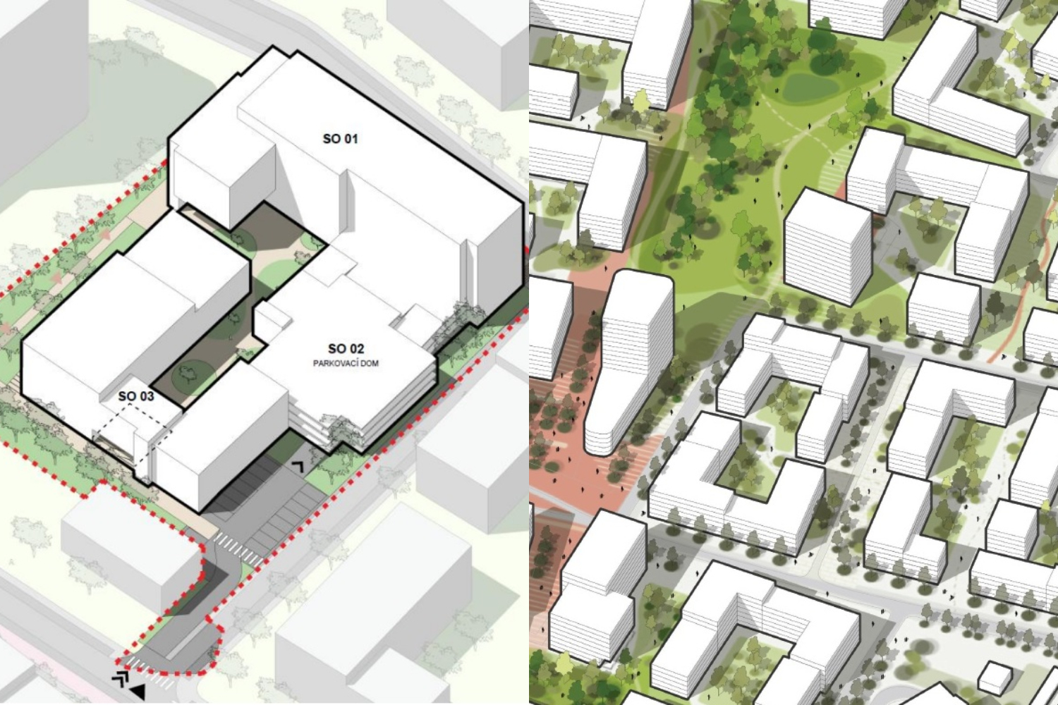 Parkovací dom takými zásadnými úpravami neprejde. Ráta sa však s novým vjazdom a výjazdom, aby došlo k uvoľneniu vnútrobloku. Asanovať by sa mala aj dvojica schodísk za účelom sprístupnenia átria vo vnútrobloku.