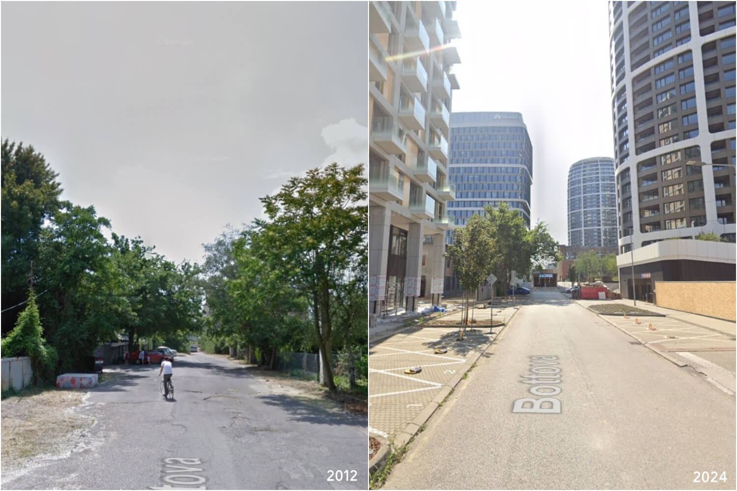 Bottova ulica, pri ktorej ťažko uveriť, že sa jedná o snímky z jedného miesta. Zdroj: Google StreetView