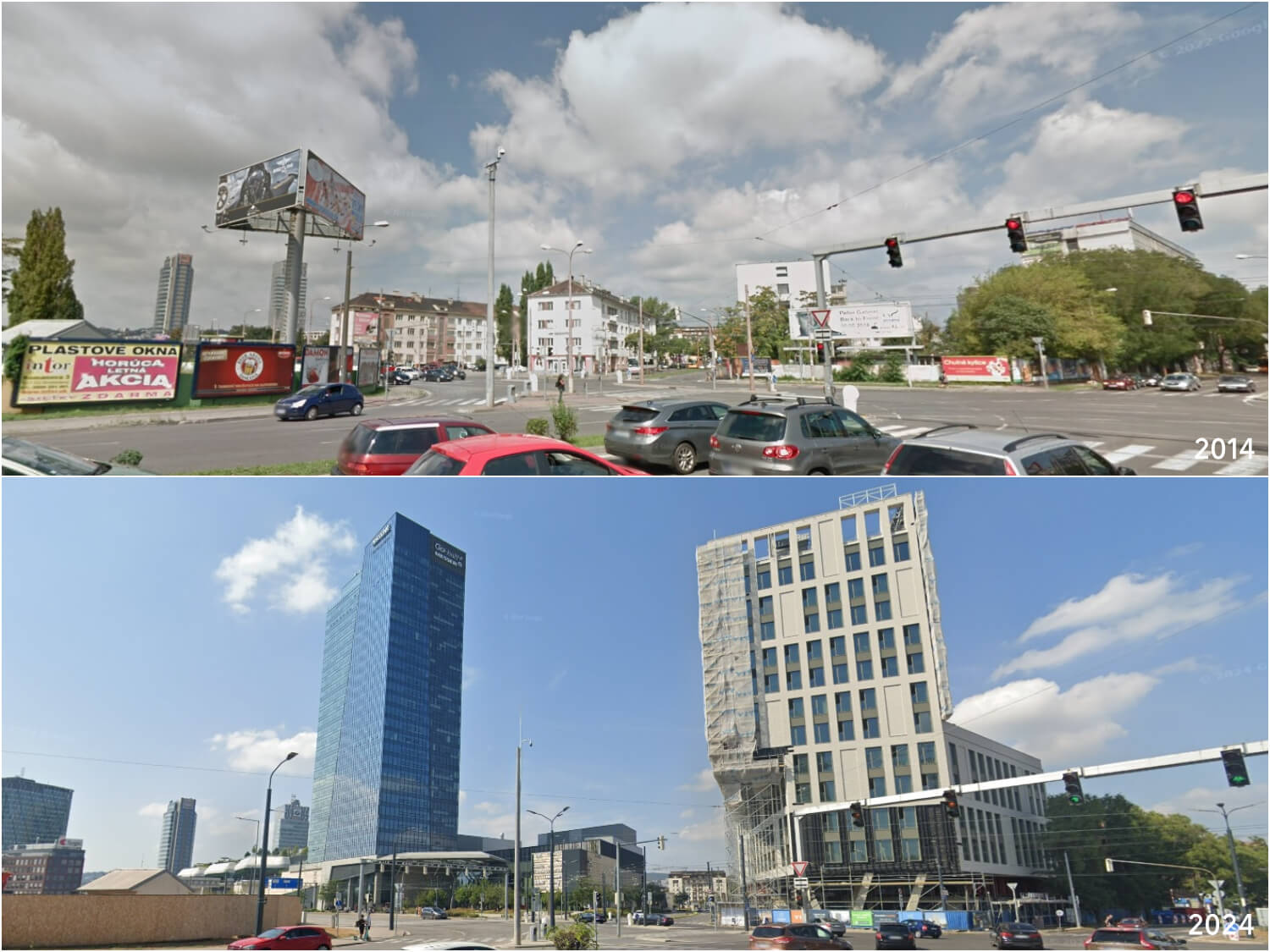 Kedysi okraj mesta, dnes jeho centrum. Križovatka bude čoskoro obklopená vežami. Zdroj: Google StreetView