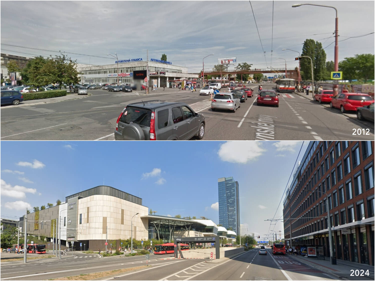 Mlynské Nivy pri autobusovej stanici prešli jednou z najdramatickejších zmien. Zdroj: Google StreetView