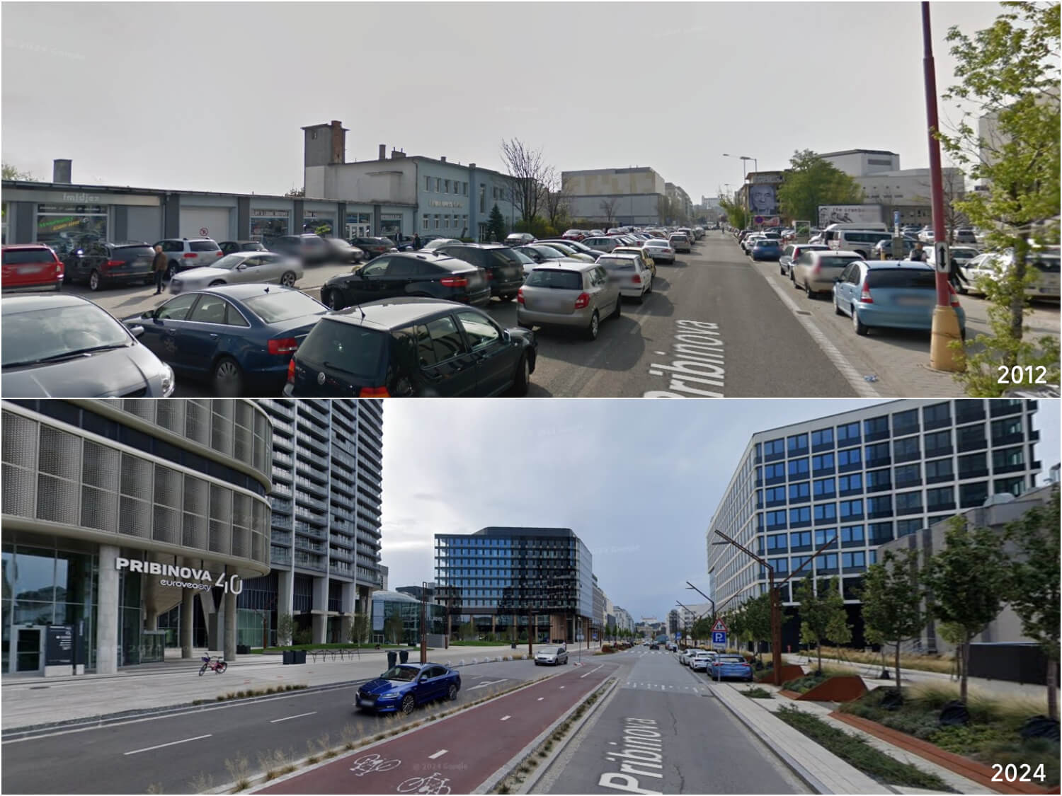 Veľká premena Pribinovej. Zdroj: Google StreetView