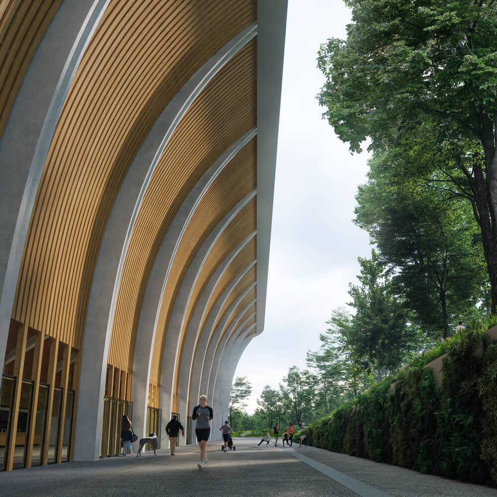 Aj napriek zložitej hierarchii drevených rebier na fasáde a streche je veľký horizontálny objem štadióna rozčlenený tak, aby spĺňal požiadavky na ľudskú mierku. Zároveň ponúka dostatok priestoru pre fanúšikov, zhromažďujúcich sa na priľahlých verejných priestranstvách. Okrem primárneho účelu by mal štadión ponúknuť aj priestory na iné rekreačné či kultúrne využitie. Využívaný tak bude aj mimo športových podujatí. „Štadión, ktorý poskytuje množstvo verejných priestorov na používanie 365 dní v roku, bude pre mesto medzníkom, ktorý zahŕňa najvyššie štandardy environmentálnej, ekonomickej a sociálnej udržateľnosti v každom aspekte svojho dizajnu a výstavby,“ povedal o projekte Gianluca Racana, riaditeľ ZHA.