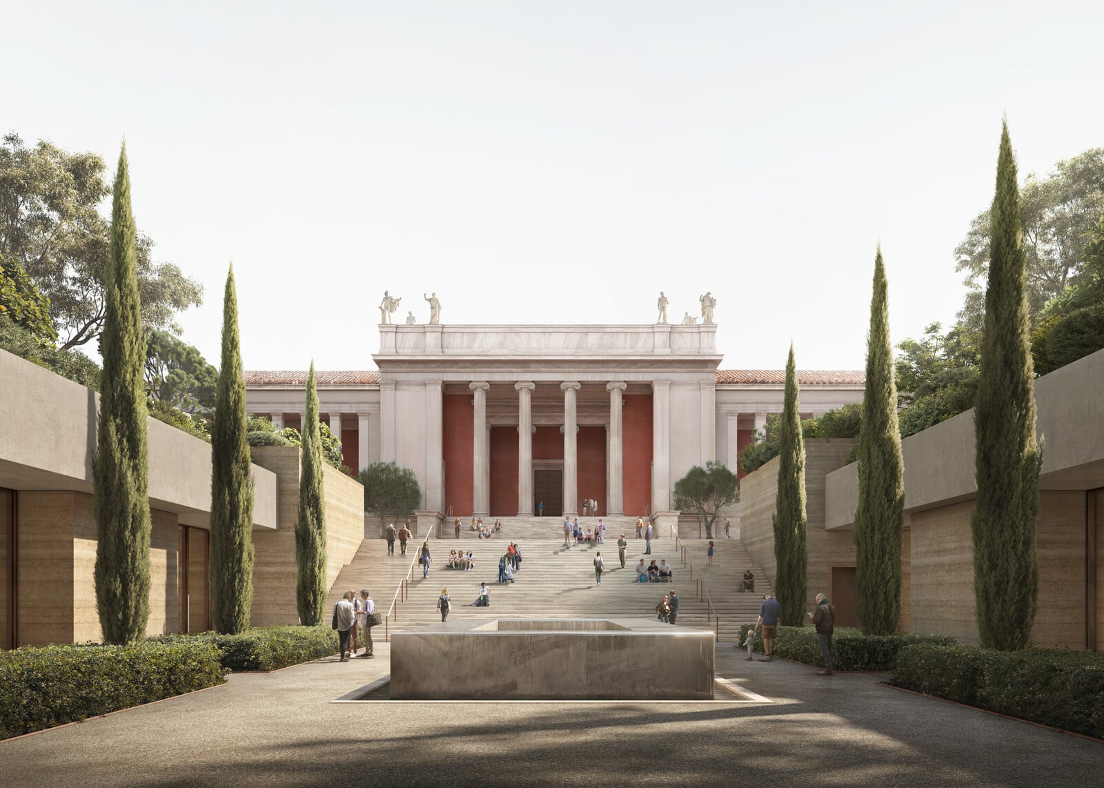 Dôležitým aspektom projektu je práve práca s verejným priestorom. V súčasnosti pôsobí areál uzavreto, čo je v rozpore s moderným chápaním kultúrnych inštitúcií. Nové riešenie počíta s otvorenými pešími trasami, pobytovými plochami a zeleňou, ktoré budú prístupné aj bez vstupu do múzea. Chipperfield v tejto súvislosti poukazuje na to, že „múzeá dnes nemajú byť len miestami uchovávania artefaktov, ale aj aktívnymi mestskými priestormi, ktoré ľudia využívajú spontánne a prirodzene“.