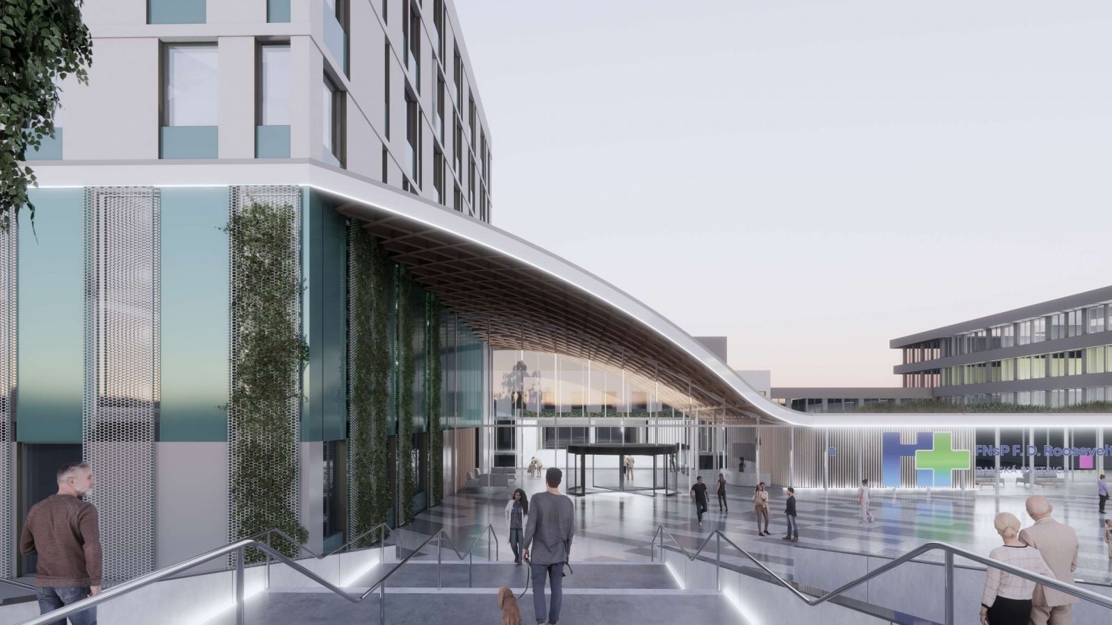 Projekt predpokladá rekonštrukciu a zbúranie niektorých starých stavieb vrátane hlavnej dominanty dvoch spojených blokov a výstavbu nových objektov v rámci existujúceho areálu FNsP FDR. Nový vstupný objekt bol navrhnutý ako organická vlna spájajúca nové jednoduché kubické časti nemocnice s existujúcou poliklinikou. Hlavná fasáda bude pozostávať z bielych kompozitných panelov.