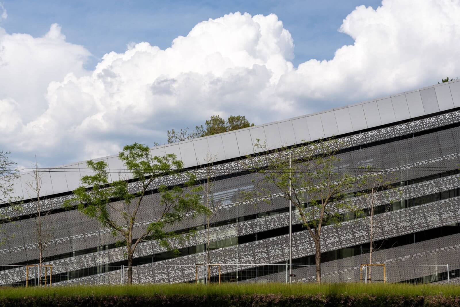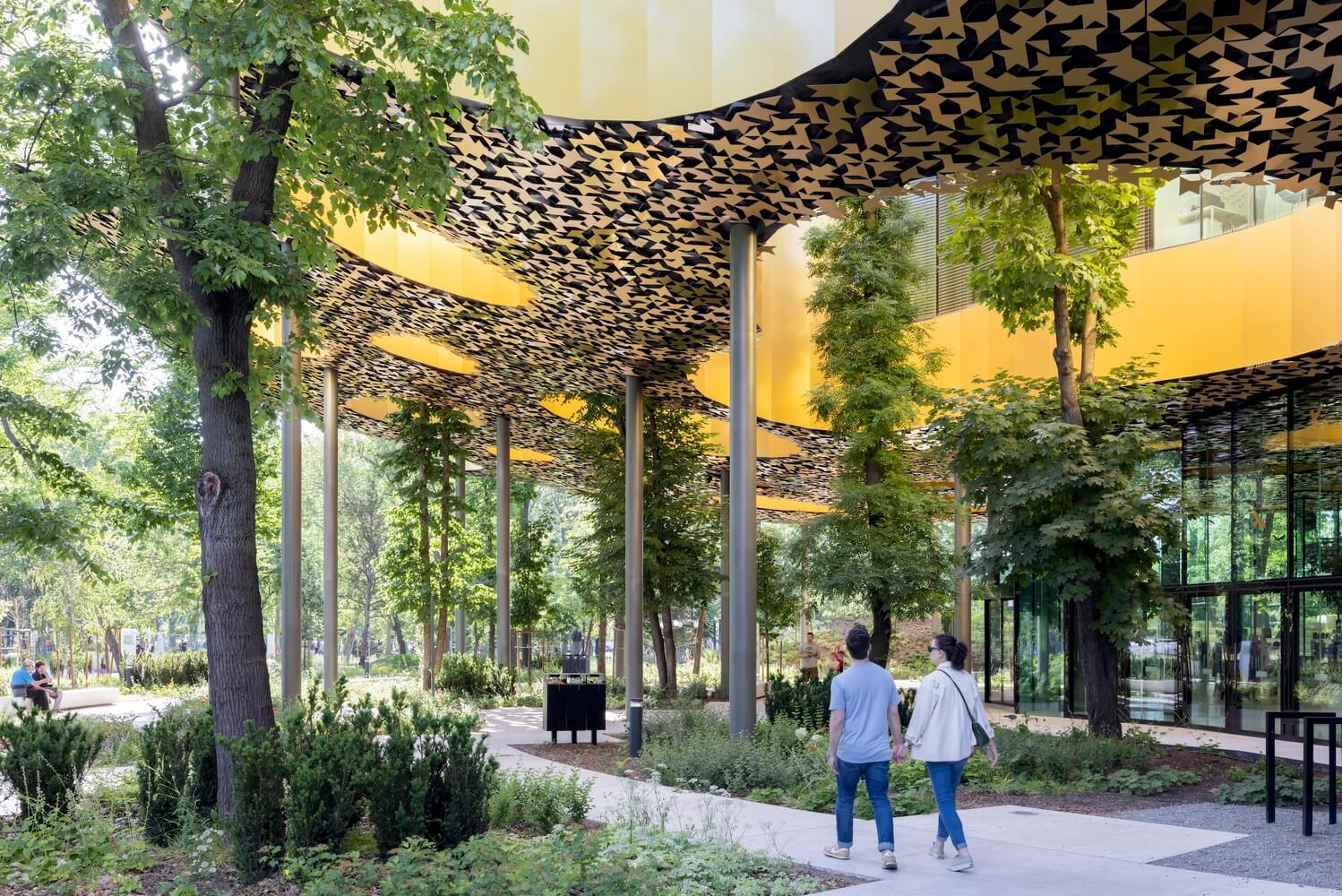 Naplniť tento cieľ sa architektom zo štúdia NAPUR podarilo vďaka tomu, že až 60% budovy ukryli pod úroveň terénu. Zelená strecha múzea zároveň slúži ako komunitný priestor a pokračovanie samotného parku. Vďaka klenutému strešnému priestoru budova pôsobí dynamicky. Použitie tohto princípu navyše umožnilo, že funguje ako priechod, spájajúci mesto a park.