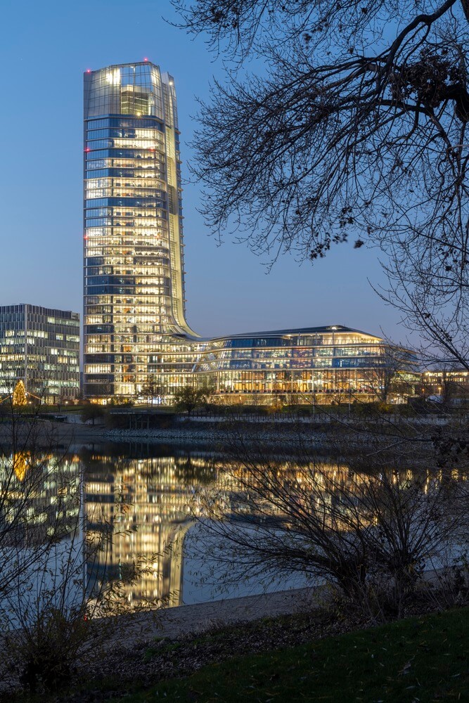 Celou výškou budovy zároveň prechádza centrálne átrium. Nové sídlo známej maďarskej spoločnosti sa vyznačuje dynamicko-organickou architektúrou, a to nielen pri pohľade na tvar budovy, ale aj pri návšteve jej vnútorných priestorov, kde sú krivky rovnako prítomné. Ide o najvyššiu vežu v meste, ktorá vďaka svojej výške 143 metrov prekonala budovu maďarského parlamentu.