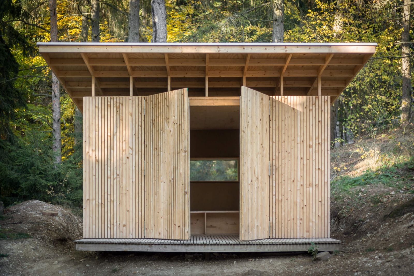 Turistická útulňa od ateliéru Grau Architects sa nachádza vo Volovských vrchoch pri Vyšnom Medzeve, na červenej turistickej trase, v nadmorskej výške 850 m. Projekt z roku 2021 bol realizovaný o rok neskôr a ponúka 16 m² úžitkovej plochy pre turistov na Ceste hrdinov SNP i celoročných návštevníkov. Už pri ceste lesom zaujme výrazným vonkajším sedím a modrými okenicami.