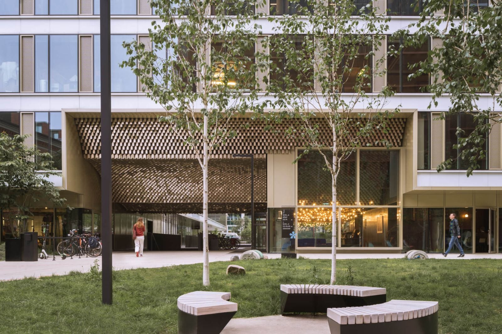 Najvýraznejším prvkom objektu je jeho fasáda z výklopných panelov. „Riešenie fasády je poctou starým budovám pivovaru – nevysmieva sa mu použitím identických foriem a materiálov, ale svojou strohosťou a farebnosťou s ním nenápadne vstupuje do dialógu. Vďaka možnosti nastavenia polohy týchto prvkov sa fasáda trblieta vo svetle a mení sa podľa priania obyvateľov,” opisujú svoj zámer architekti z JEMS. Projekt využíva panely medenej farby, ktoré dokonale ladia so susednými budovami bývalých Varšavských pivovarov.