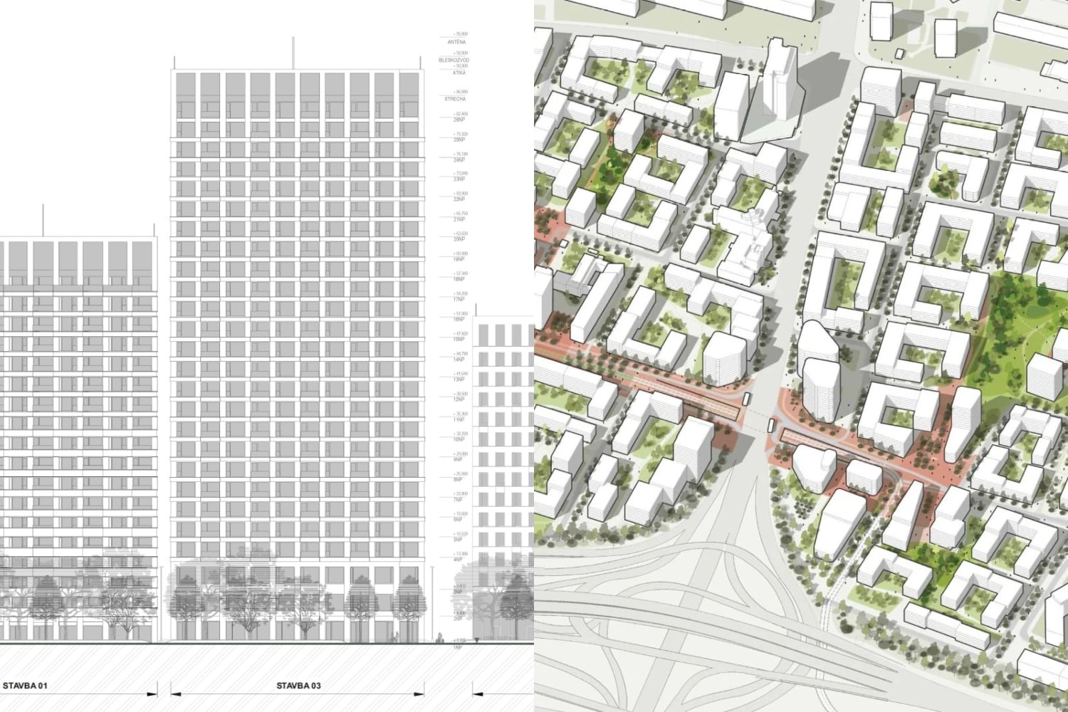 Dnes je už známe, ako bude vyzerať kľúčová časť developmentu popri Bajkalskej. Na posudzovaní vplyvov na životné prostredie (EIA) sa totiž objavil zámer Polyfunkčný súbor Bajkalská, ktorý prináša víziu výstavby trojice výškových budov. Označené sú ako Stavba 01-03 a spoločne majú vyplniť priestor tak, aby medzi nimi ostali plochy pre parkové úpravy.
