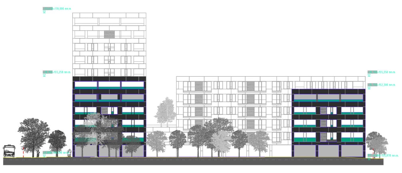 Suterén, tzn. prvé podzemné podlažie, bude takmer pod celou plochou objektov a pod priestorom dvora. Samotný dvor bude slúžiť ako oddychový park a ihriská. Hlavnou dominantou zámeru má byť budova A, ktorá sa má so svojimi 11 NP citlivo zapojiť do vznikajúcej mestskej štruktúry a vytvoriť mierny akcent na nároží. Zohľadňovať pritom bude aj susednú pripravovanú Novú Matadorku. Podľa EIA vychádza totiž architektúra nielen z tvaru a situovania pozemku, ale aj z kontextu plánovaného okolitého prostredia.