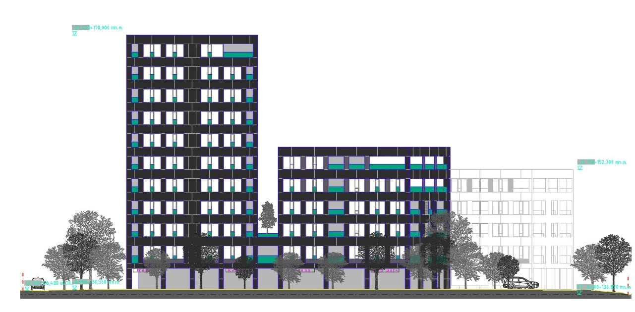 Na druhom NP sú naplánované administratívne priestory a na treťom až 11 NP byty. Na treťom a štvrtom NP bude jeden byt určený len na krátkodobé ubytovanie. Objekt C bude tvorený administratívnou funkciou, doplnenou o občiansku vybavenosť na prízemí.