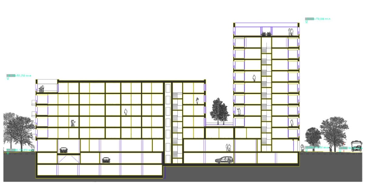 V nadzemnej časti sa vybuduje blok A a C. Časť A bude bytový dom s občianskou vybavenosťou s 11 NP. Občianska vybavenosť bude aj v tomto prípade na prízemí so štyrmi vstupmi do samostatných obchodných prevádzok a samostatným vstupom do obytnej časti zo severovýchodnej strany.