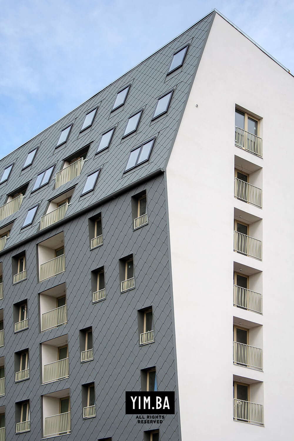 Príkladom je bytový dom Moruše. Development je k letisku skutočne blízko, čo firma prirodzene vníma ako určitý hendikep. Podľa nej ide o bývanie určené pre „milovníkov dynamického mestského života“. Možno sa len domnievať, že ide o narážku na blízky dopravný ruch. Firma otvorene komunikuje, že použila materiály a riešenia, zabezpečujúce väčšiu akustickú pohodu.
