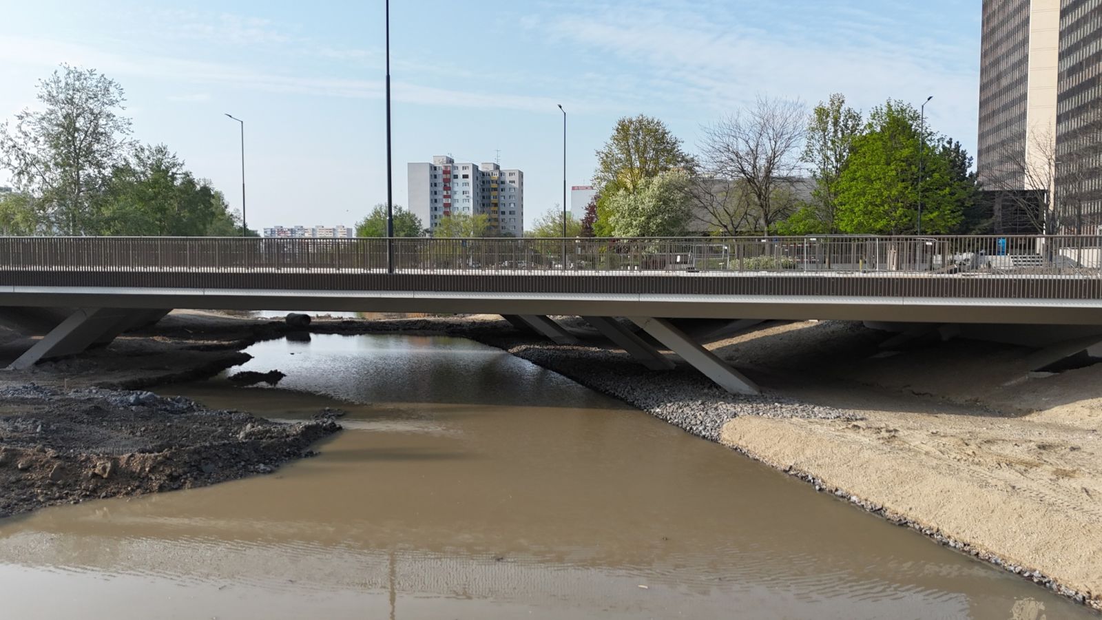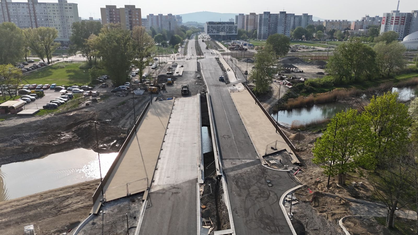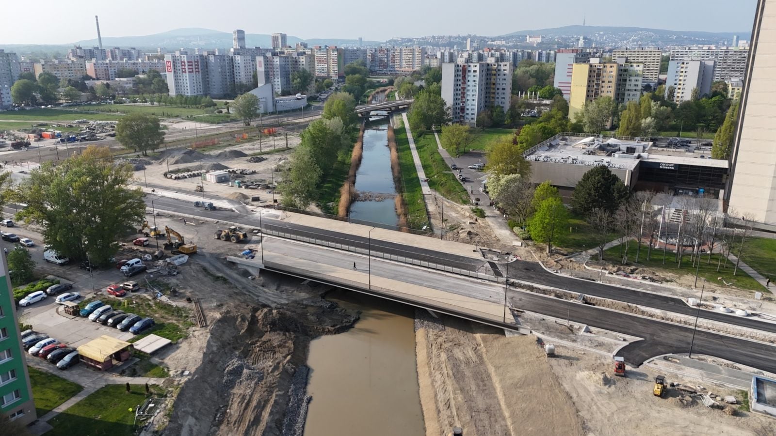 Stále však ešte nie je celkom dokončený. „Pokračujú ešte dokončovacie práce na napojeniach, priľahlých komunikáciách a úpravách okolia či brehov Chorvátskeho ramena,“ približuje Feik. Rameno ešte nie je celkom sprietočnené, dobudovať ostáva chodníky, cyklotrasy aj cestnú vozovku.