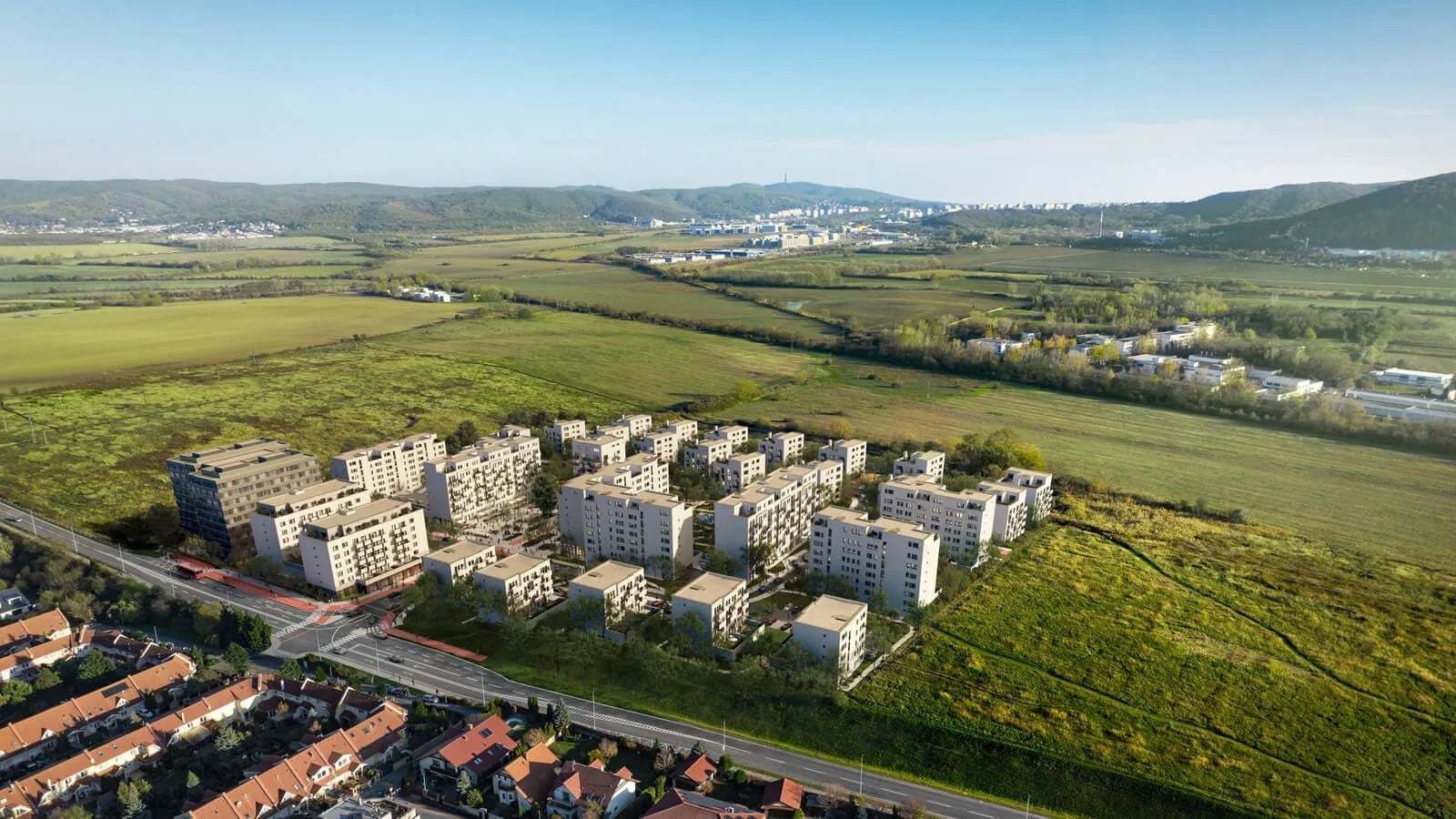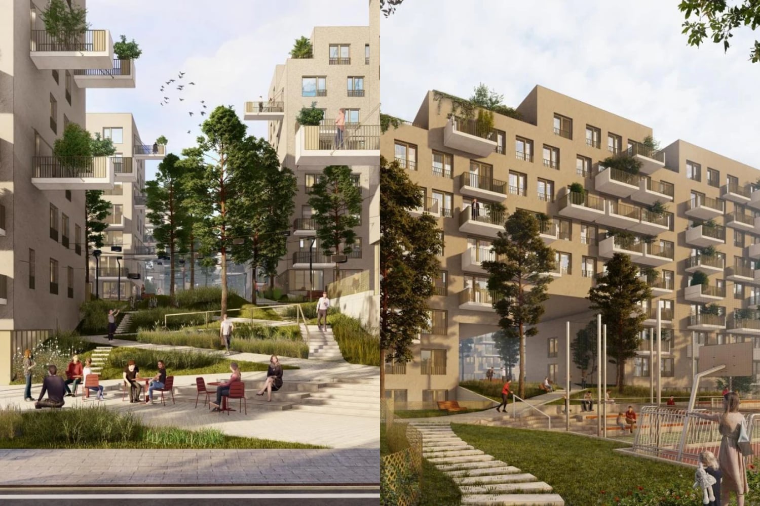 Obytnú časť majú tvoriť terasové polyfunkčné domy, medzi ktorými vznikne pešia promenáda, doplnená o kaviarne, vonkajšie terasy, detské a športové ihriská a rozsiahle plochy zelene. Rezidenčné budovy sú navrhnuté so siedmimi až ôsmimi nadzemnými podlažiami, pričom ustúpené najvyššie podlažia majú vizuálne zjemniť ich hmotu.