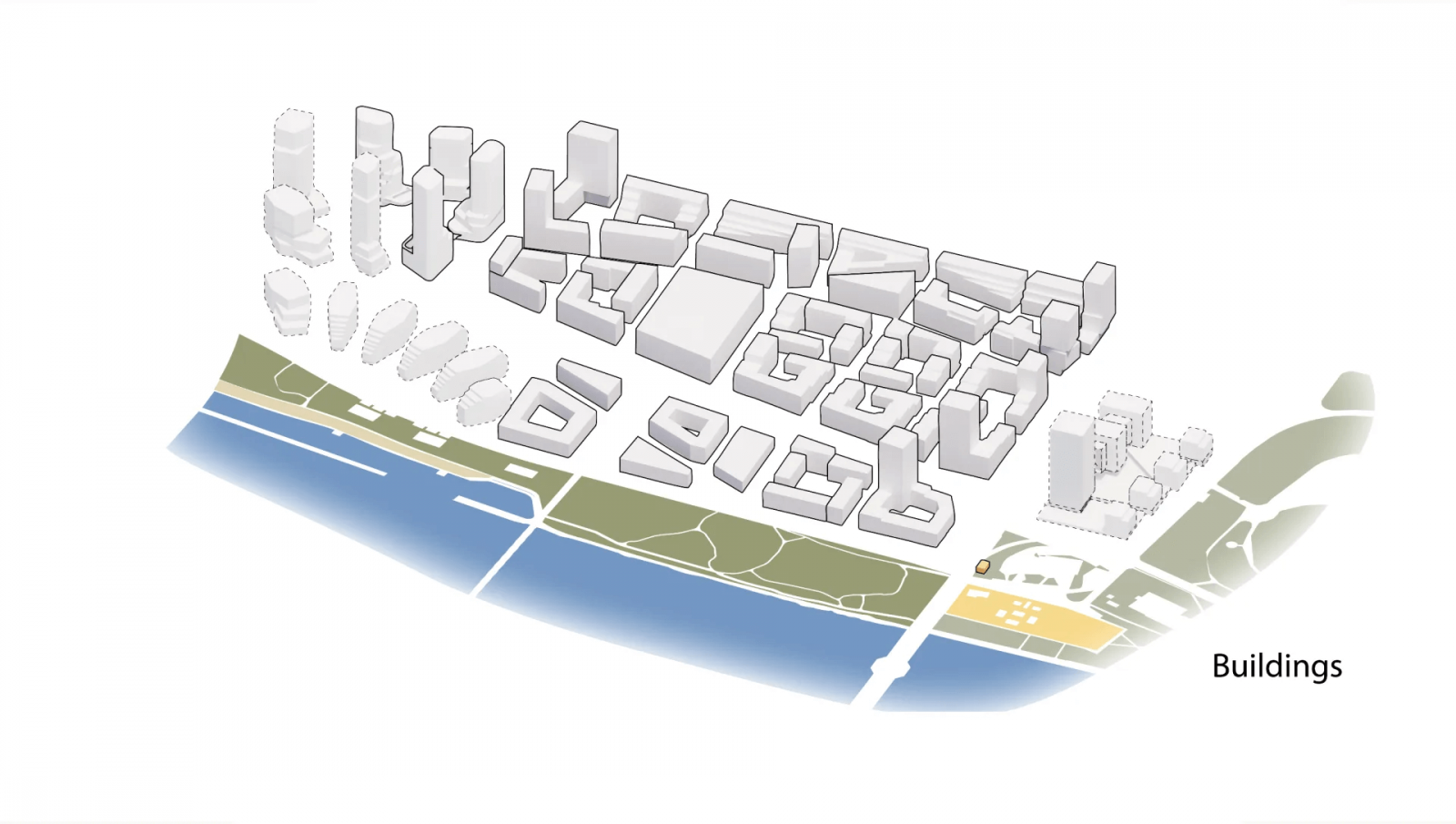 Významnejšie a väčšie je však Nové Lido. Pôjde o komplexnú mestskú štvrť, tvorenú bývaním, kancelárskym kampusom aj rozsiahlou občianskou vybavenosťou. Developer zveril navrhovanie koncepcie štvrte viacerým popredným slovenským ateliérom – najmä Compass architektom a Marko&Placemakers – ktorí tu navrhli blokovú štruktúru, pripomínajúcu jadrá európskych veľkomiest. Bloky nižšej mierky majú dopĺňať výškové akcenty, dominanty a výraznejšie solitérne budovy.