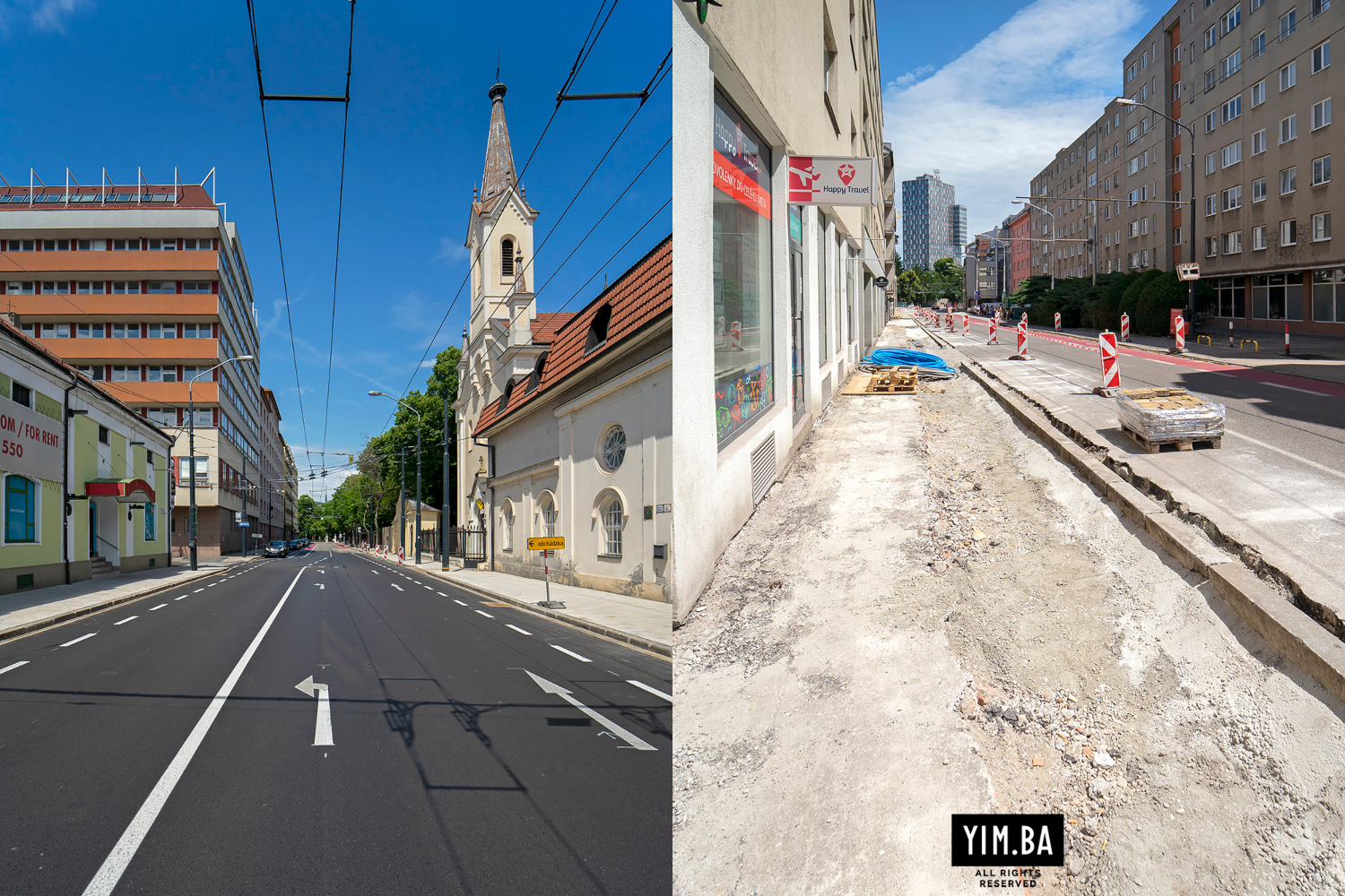 Dnes sú takmer ukončené aj tieto práce, stavebník sa tak sústredí na dva kritické priestory: križovatku Karadžičovej s Mlynskými nivami a Dunajskú. Vďaka zmene organizácii dopravy sa mohlo pristúpiť k budovaniu širšieho chodníka na severnej strane Dunajskej aj výstavbe vyvýšeného priechodu v blízkosti Bratislavského bábkového divadla. Ako ale naznačujú výkopy popri veľkej časti ulice, čoskoro sa začnú realizovať ďalšie zásahy.
