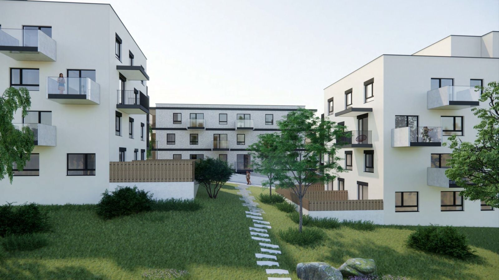 Tie pozostávajú z dvoch bytových domov (sekciový a bodový), ktoré sú funkčne a prevádzkovo prepojené podzemnou garážou. Výškové rozdiely sú prepojené rampami a zároveň sú tieto úrovne prístupné z komunikácie z južnej časti pozemku. Šachovnicové rozloženie bytových domov umožní vznik poloverejných dvorov s vylúčením automobilovej dopravy, na juh otvorených vnútroblokov so športoviskami na relax, kočíkovanie a voľnočasové aktivity.
