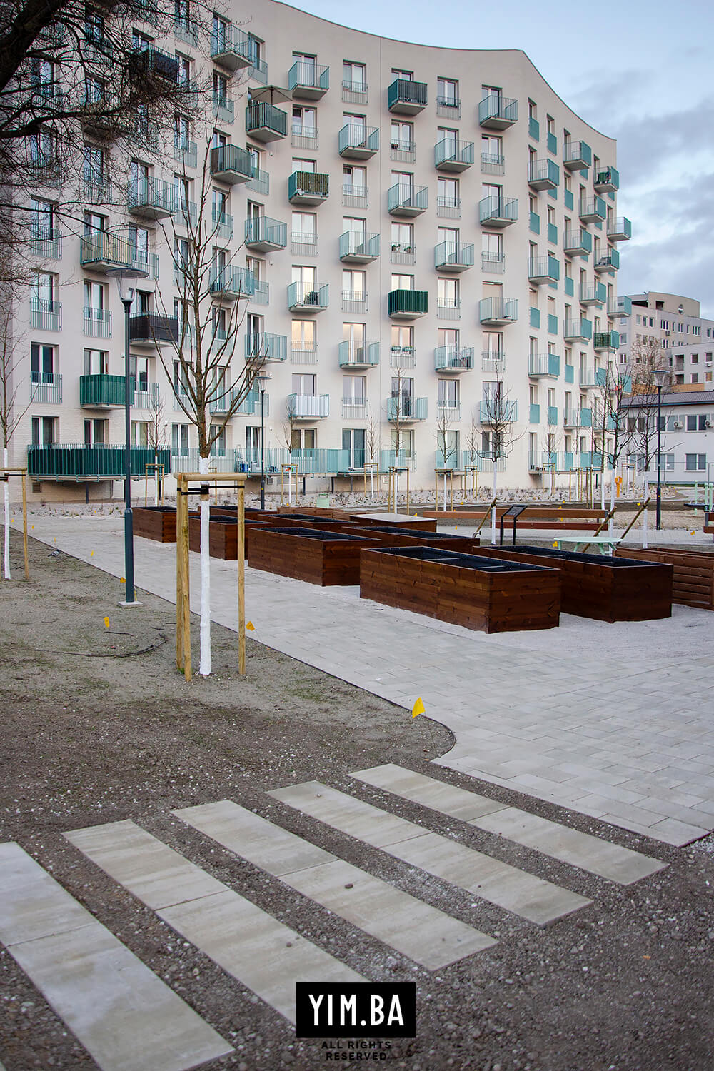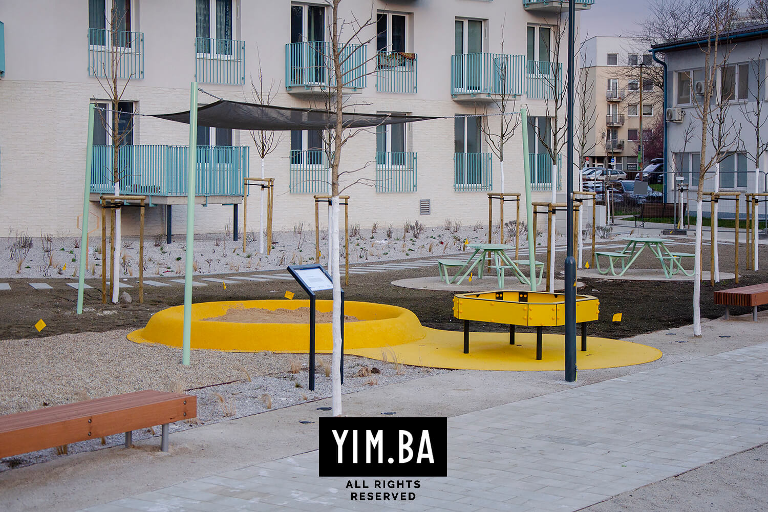Ide o prvú etapu širšieho projektu, predsa len ale ešte nie je celkom dokončená. Jej súčasťou je totiž aj park vnútroblokového charakteru medzi nájomnou bytovkou a projektom Muchovo Námestie od developera VI Group. V čase odovzdania nájomného domu ešte bola plocha pre park prázdna. Dnes sa však nový verejný priestor chýli k dokončeniu.