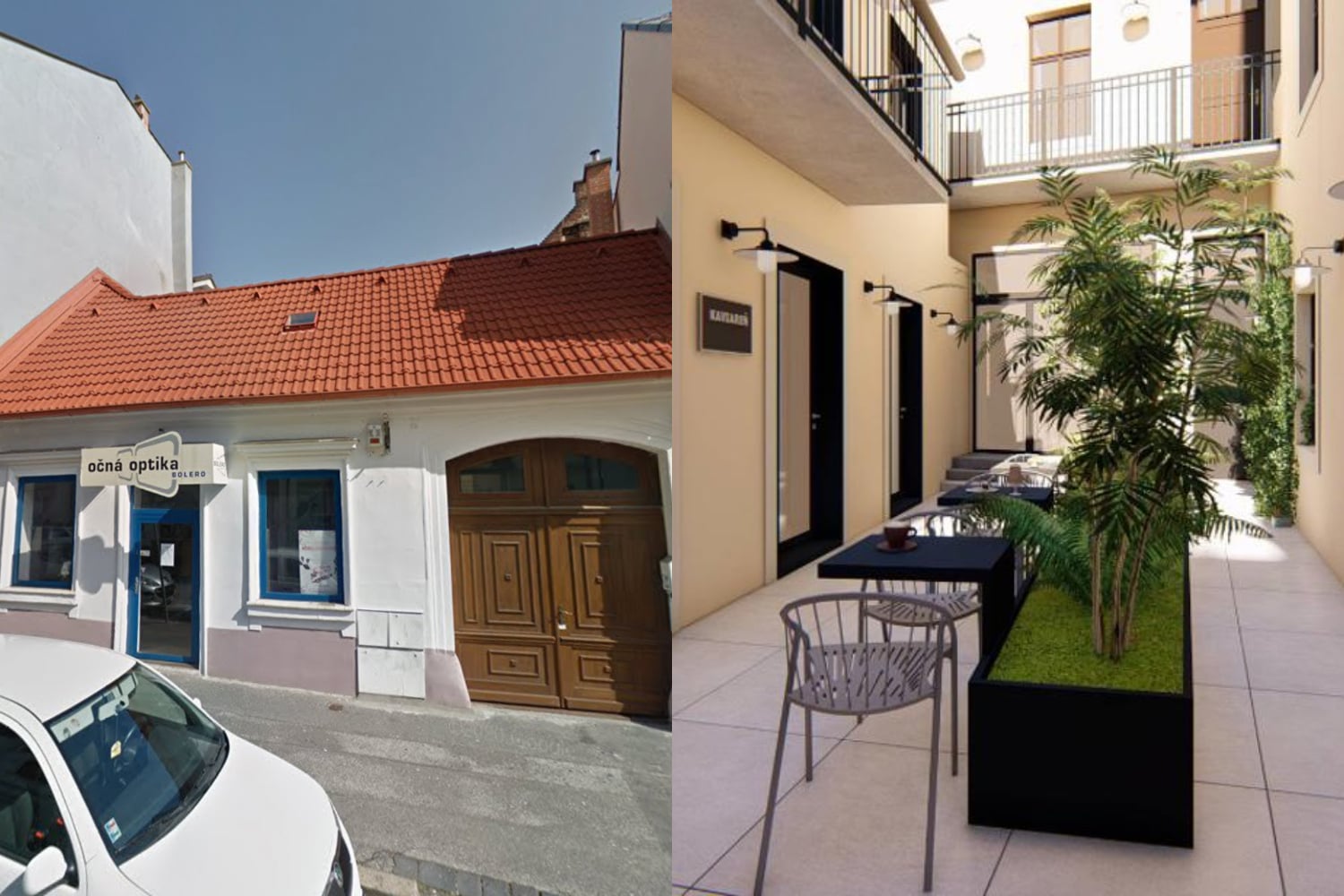 Podoba objektu by mala nadväzovať na charakter okolitej zástavby. Zastrešenie bude riešené sedlovými, príp. pultovými strechami. Átrium bude mať zeleň v kvetináčoch, keďže klasická zeleň by mohla poškodiť pivnice. Nové parkovanie sa v rámci prestavby budovať nebude - pokrytie nárokov na statickú dopravu síce predstavuje šesť parkovacích miest, tie ale budú zabezpečené kúpnou zmluvou v plánovanej podzemnej garáži na Kollárovom námestí. Investor plánuje kúpiť osem parkovacích miest.