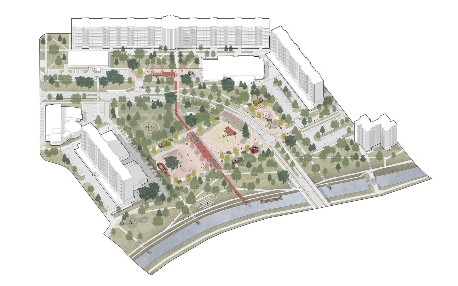 Mesto vyhlásilo ešte v roku 2022 architektonicko-krajinársku súťaž, v ktorej sa presadila kancelária Gro Architekti. Víťazný návrh priniesol veľkorysý a atraktívny koncept priestranstva so silnou identitou, kombinujúcou priestory pre relax, športovanie, kultúrne podujatia, ale aj zlepšenie stavu zelene a jej doplnenie. Optimálne pritom rieši dopravné, pešie či cyklistické ťahy, ktoré územím prechádzajú, a zachováva a skvalitňuje existujúce hodnoty.