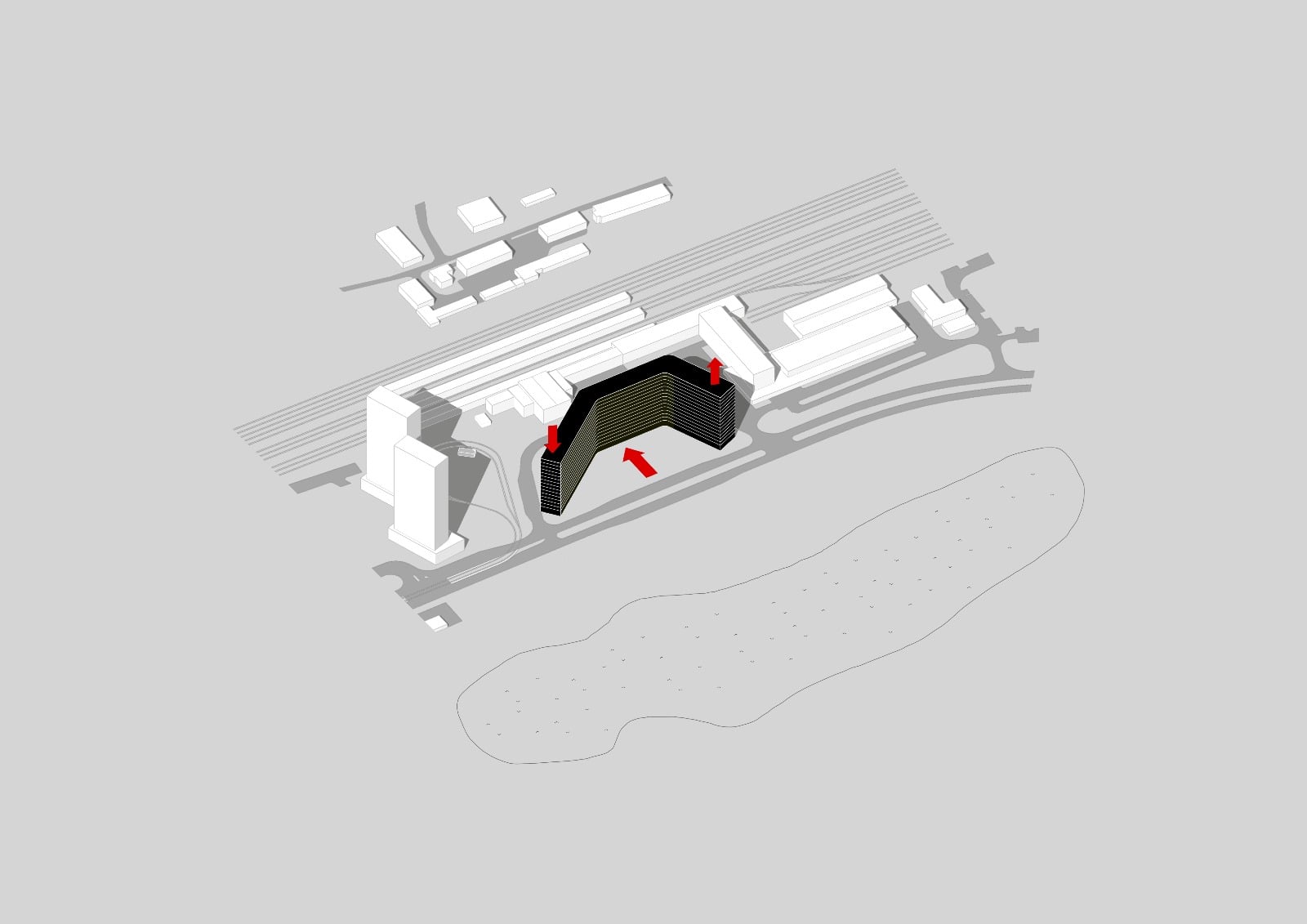 Ide tak o dramatické zvýšenie úrovne oproti pôvodnému riešeniu. To síce zachovávalo vizuálne spojenie so stanicou, v ostatných aspektoch ale bolo jednoznačne horšie. Developer a investor urobili jednoznačne správny krok v organizácii súťaže a totálnej zmene konceptu – a to aj napriek tomu, že sa tým oddiali realizácia. Na projekt v danej podobe totiž bude pravdepodobne potrebné získať nové povolenia, minimálne stavebné a pravdepodobne aj územné rozhodnutie.