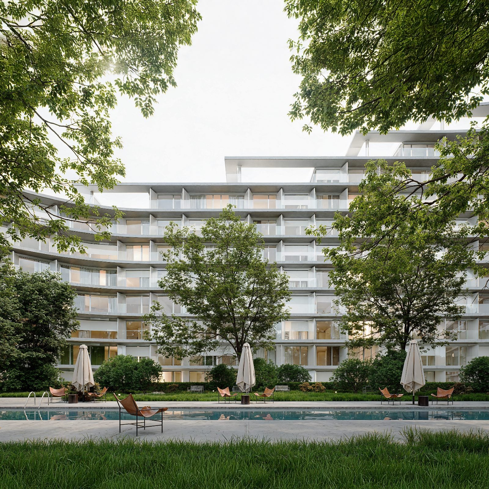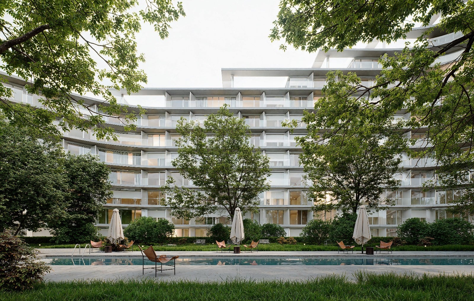 Komunitný bazén v "zálive", teda ku Kuchajde otvorenému vnútrobloku. Zdroj: Immocap / Wood&Company