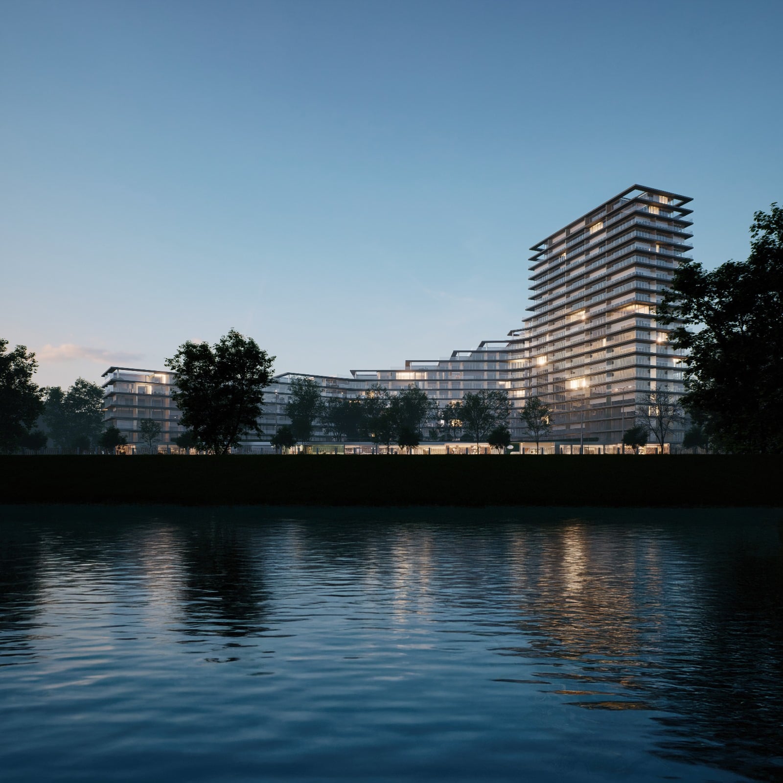 Za najlepší návrh napokon jednohlasne označila víziu od kancelárie Superatelier. Stále mladý, no čoraz významnejší ateliér najlepšie zužitkoval možnosti pozemku, ktorý má charakteristický lichobežníkový tvar, otvárajúci sa smerom k vodnej ploche a Tomášikovej ulici. Práve prítomnosť vodnej plochy je kľúčový kvalitatívny parameter lokality, ktorý chceli autori využiť.