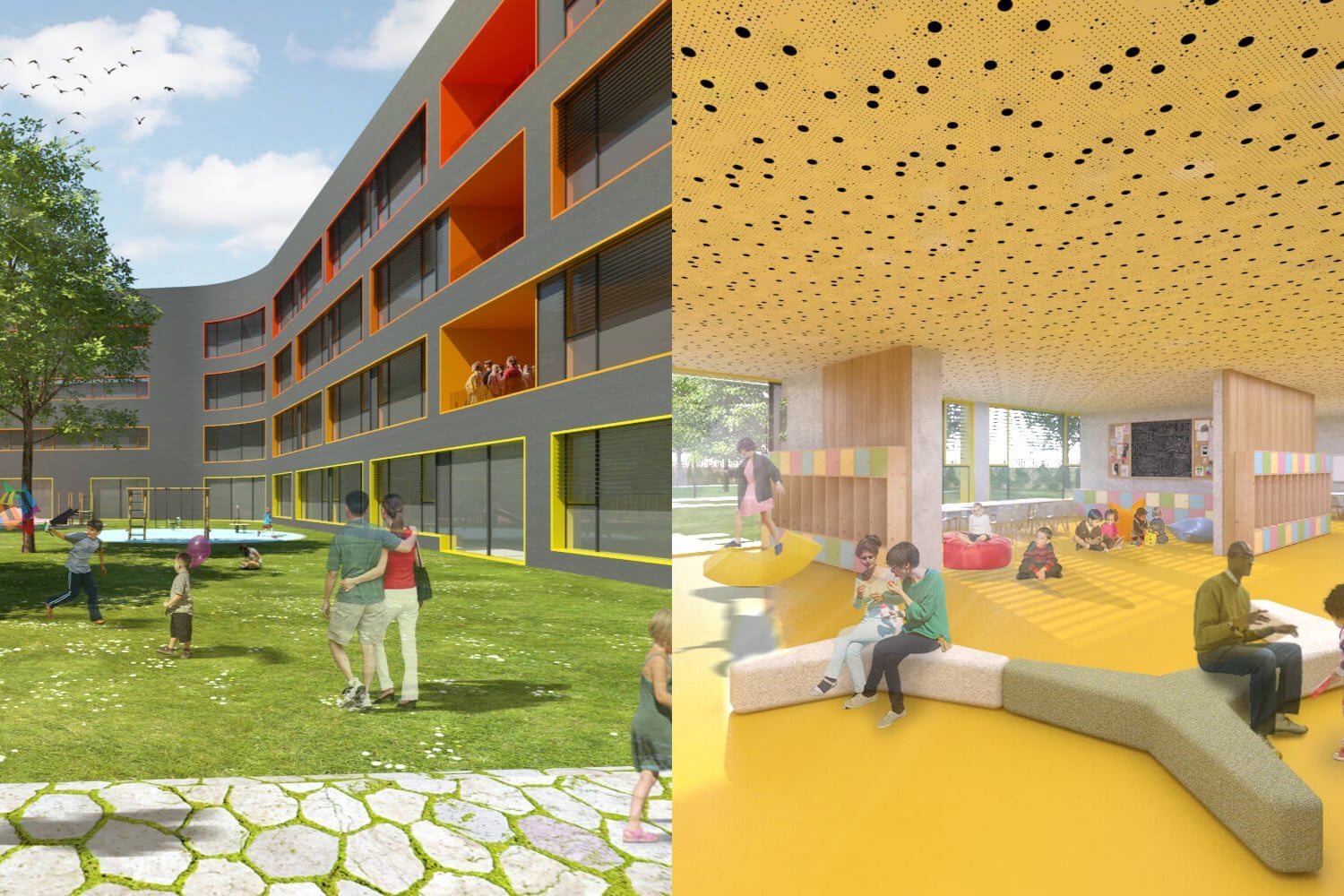 K ďalším exteriérovým úpravám patrí plocha pre menšie detské ihrisko, malé multifunkčné ihrisko, lavičky a vydláždená plocha, určená na rôzne komunitné aktivity a relax. Presnejšie detaily – napríklad kapacita školy, počty učební a tried či špeciálne prvky vybavenia – zatiaľ známe nie sú. V lokalite už dnes existuje verejná materská škola.
