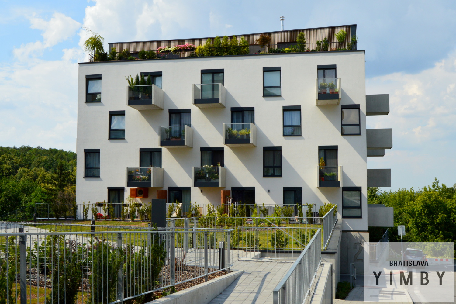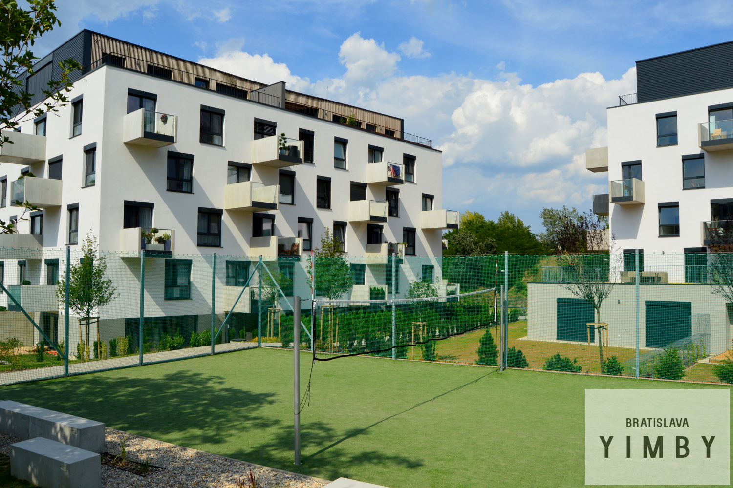 Projekt je tvorený trojicou domov s piatimi až šiestimi podlažiami, ktoré spoločne vytvárajú zelené mikropriestory a využívajú svahovitosť terénu pre osadenie podzemných garáží. V exteriéri vznikol menší parčík, detské ihrisko, či exteriérové športové ihrisko, s ohľadom na lokalitu majú obyvatelia aj priamy prístup do lesa.