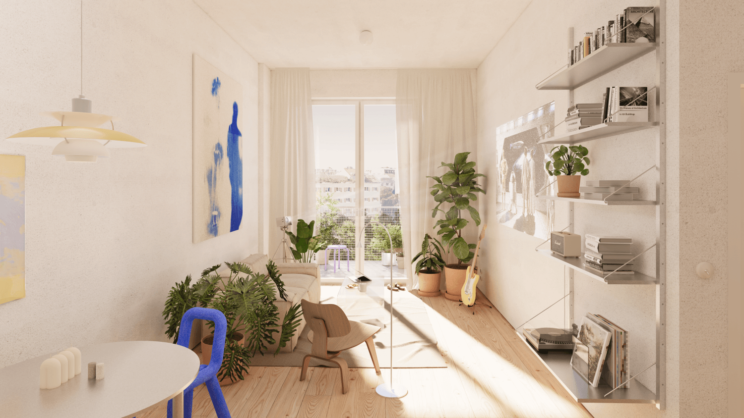 Vizualizácie interiéru naznačujú, že pôjde o dostupnejšie bývanie. Zdroj: Immocap