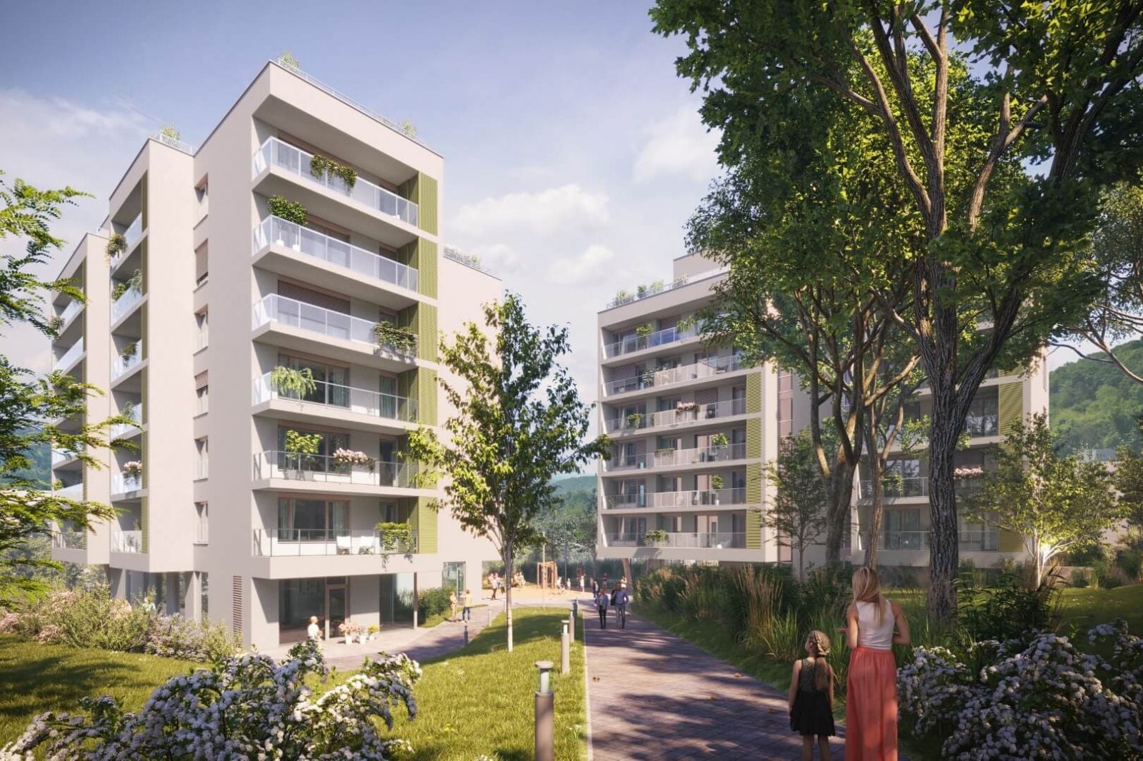 Medzi domami je plánované menšie námestie doplnené o zeleň a novú výsadbu, ktorá podporí ekologický ráz projektu a poskytne príjemné prostredie na trávenie voľného času. Architektonický návrh spracoval ateliér šujan_stassel, autor aj prvej etapy.